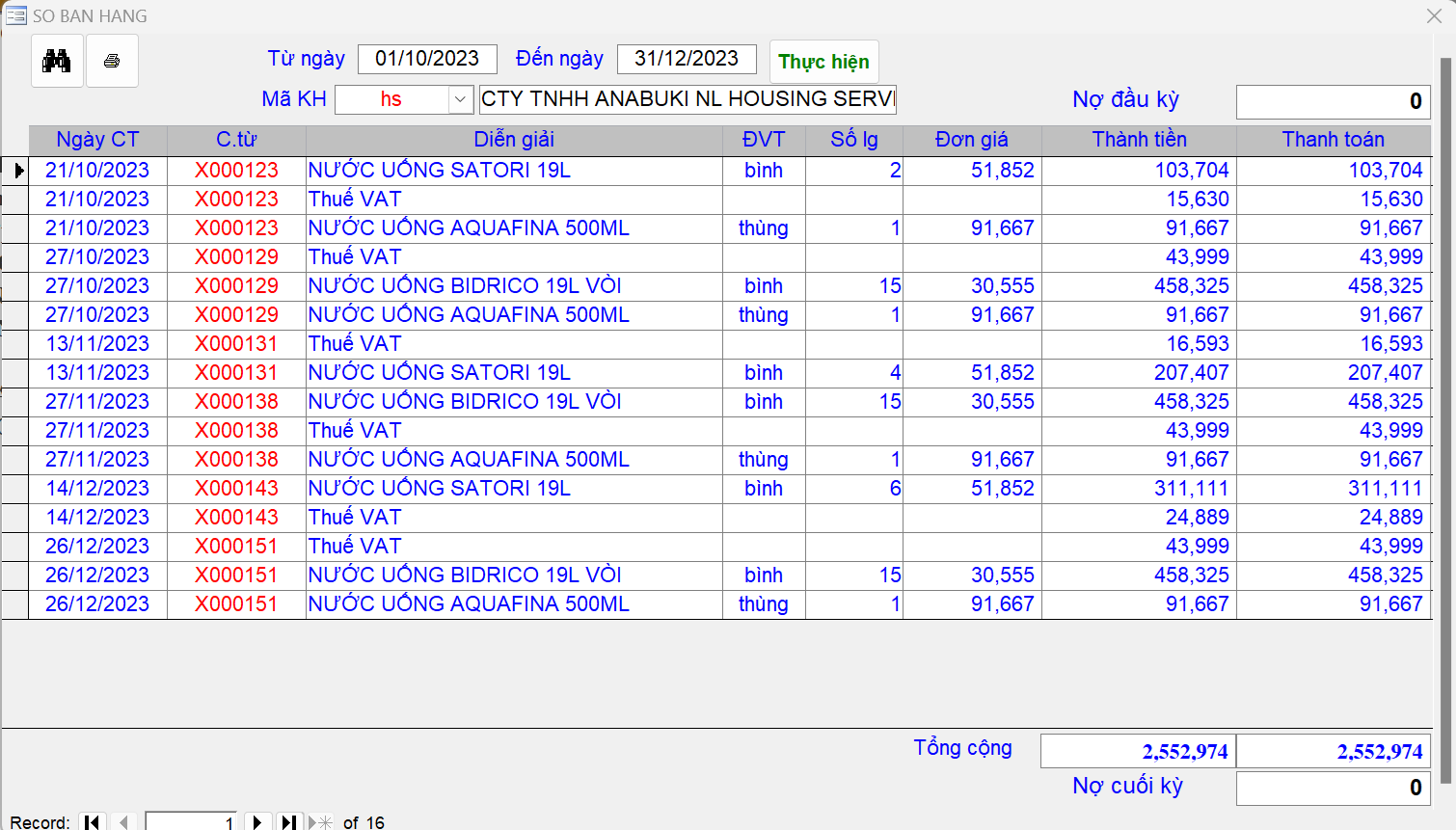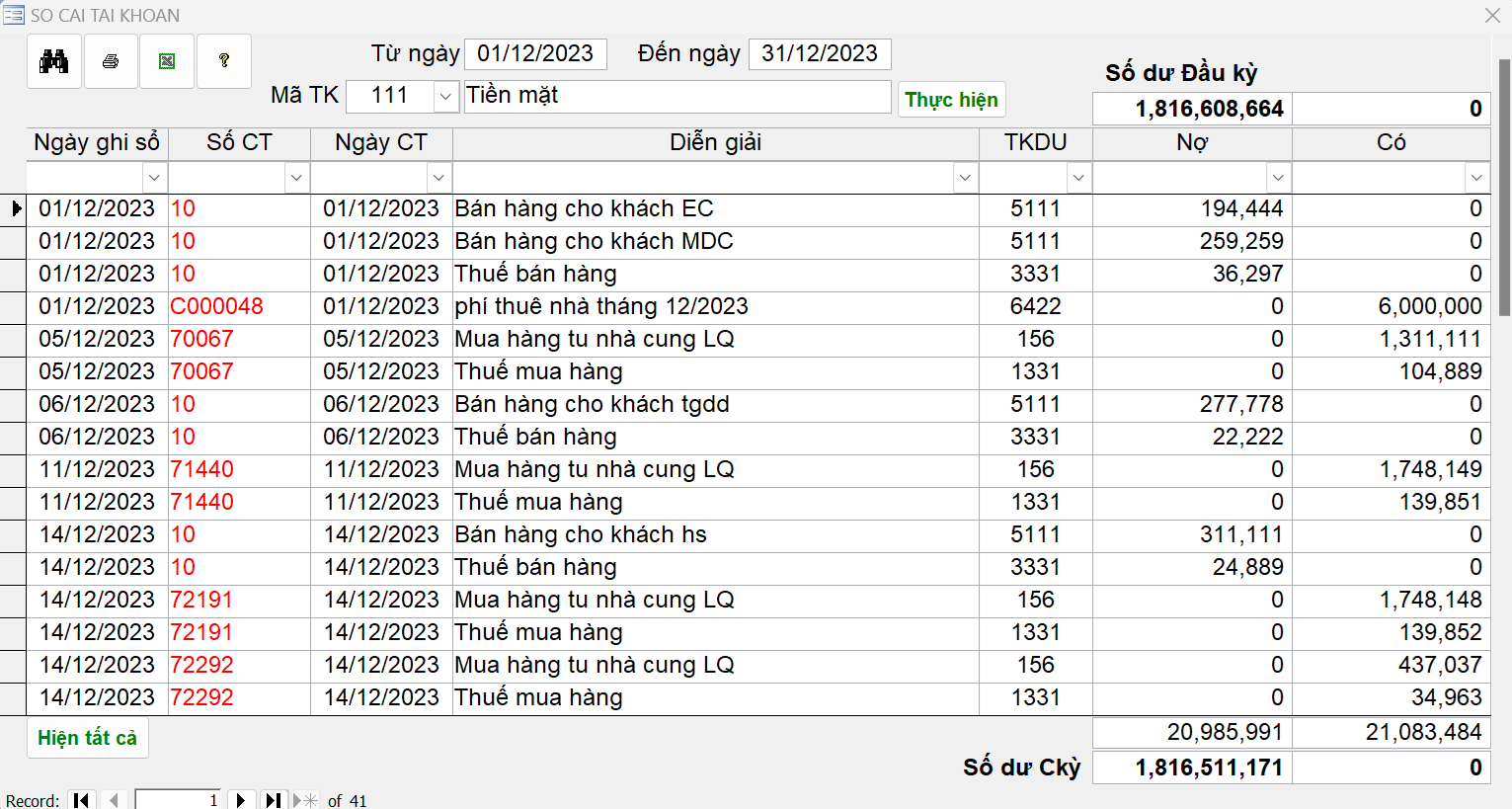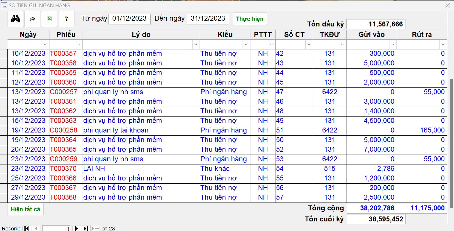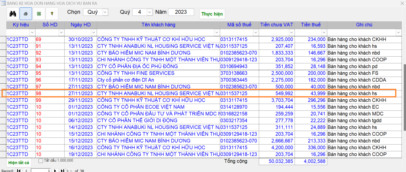 - Thao tác tương tự như bán hàng: các biểu mẫu gồm Bảng kê hoá đơn mua, bảng kê chi tiết nhập hàng, bảng đối chiếu công nợ với nhà cung.