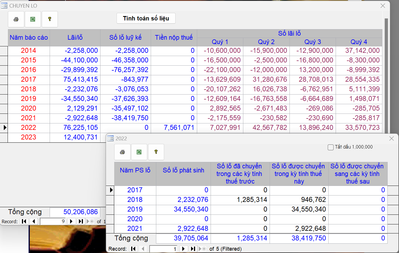 - Chức năng chuyển lỗ dành cho người báo cáo thuế