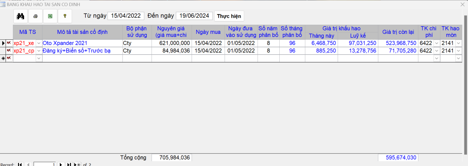 Sau khi khai báo tài sản cố định, phần mềm tự động trích khấu hao hàng tháng thông qua bút toán tự động
