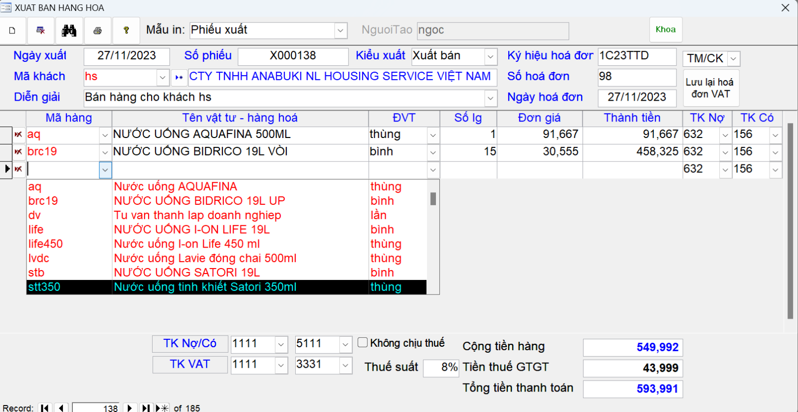 - Nhập liệu xuất bán hàng hoá kiêm xuất kho