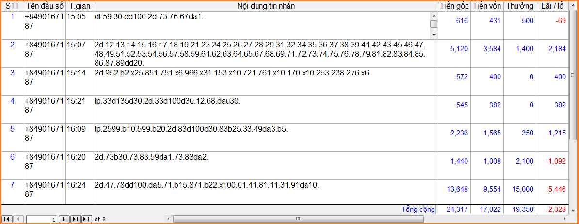 + Phiên bản đặc biệt: Giá 700$/1 bản (kết nối tin tự động, cân số, xếp số 4->11 góc, nợ cũ, phân tích xương nạc).